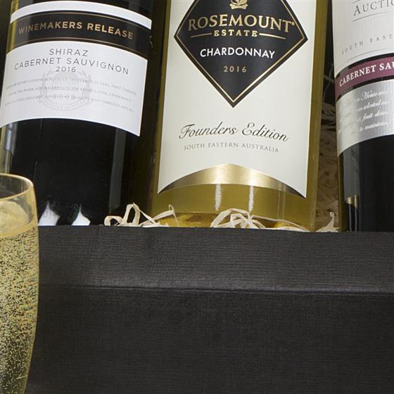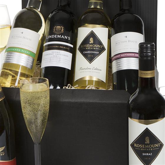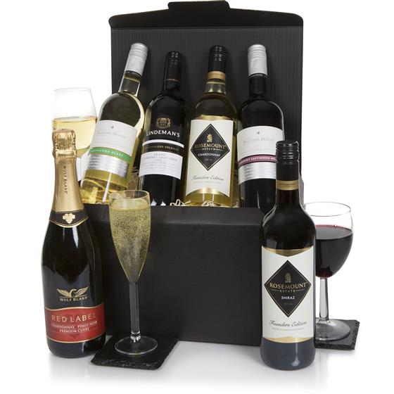 75cl Wolf Blass Red Label Chardonnay Pinot Noir,75cl Rosemount Founders Selection Shiraz 2015/6,75cl Lindemans Winemakers Release Shiraz Cab Sauv 16,75cl Auction House Cabernet Sauvignon Merlot 2014/15,75cl Rosemount Founders Selection Chard 16,75cl Auction House Sauvignon Blanc 2014/15,PRESENTATION BOX
