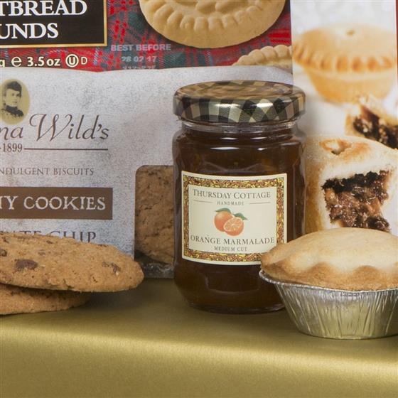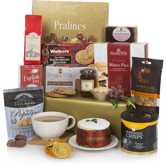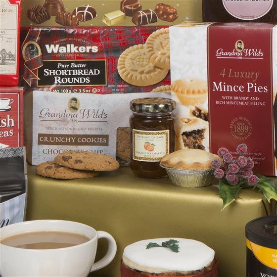 Walkers Shortbread Thistle Rounds 100g,Tommy Tucker Salted Caramel & Vanilla Popcorn 25g,Yorkshire Crisps Lightly Sea Salted 50g,Grandma Wilds Chocolate Flapjack 120g,Grandma Wilds Chocolate Chip Crunch Cookies 200g,Gold Crown Round Iced Christmas Cake 400g,Cambrook Brilliantly Sesame Peanuts 80g,Grandma Wilds 4 Lux Mince Pies with Brandy,Thursday Cottage Orange Marmalade 112g,Edinburgh Tea & Coffee Christmas Coffee 56g,New English Teas English Breakfast Teabags (10),Xmas Excelcium Assorted Pralines in a Gold Box with Stars 180g,Gold Foiled Milk Chocolate Coins 75g,Festive Carton