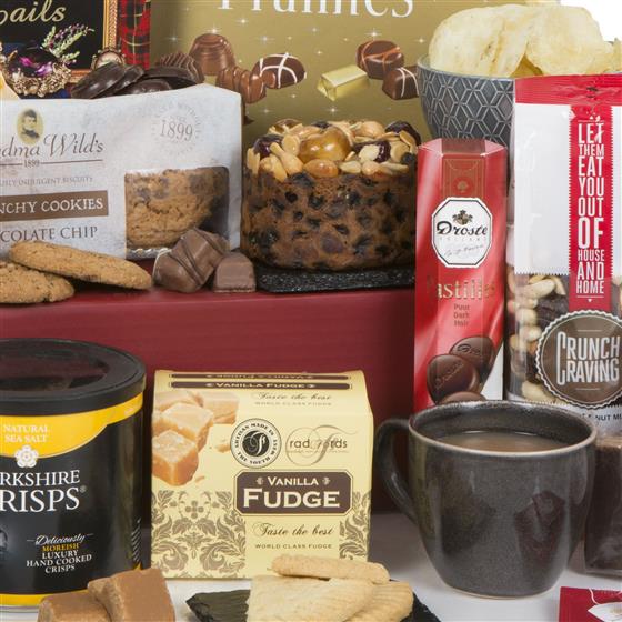 Campbells Petticoat Tails 125g,Grandma Wilds Mature Cheddar Oaty Biscuits 130g,Yorkshire Crisps Lightly Sea Salted 50g,Grandma Wilds Chocolate Flapjack 120g,Grandma Wilds Chocolate Chip Crunch Cookies 200g,Original Cake Co Cherry & Almond Topped Cake Round 400g,Crunch Craving Fruit & Nut Mix 250g,Edinburgh Breakfast Coffee 56g,New English Teas English Breakfast Teabags (10),Excelcium Assorted Pralines in a Gold Box 180g,Droste Dark Chocolate Pastilles 100g,Radfords Vanilla Fudge Box 100g,Gift Carton