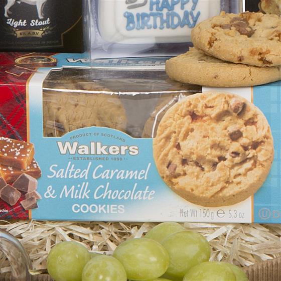 Hunters Brewery Black Jack Ale 500ml,Hunters Brewery Devon Dreamer Ale 500ml,Gourmet Black Pepper & Sea Salt Crackers 185g,Walkers Salted Caramel & Milk Chocolate Cookies 150g,Original Cake Co Mini Birthday Cake (Blue),Cambrook Mixed Nuts in a Jar 95g,Scarlett & Mustard Ploughmans Pickle 125g,Snowdonia Cheese Co Black Bomber 200g,OPEN DISPLAY BOX