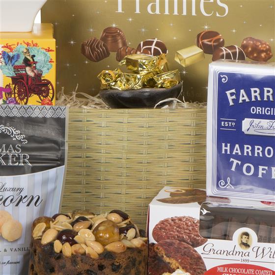 Tommy Tucker Salted Caramel & Vanilla Popcorn 25g,Grandma Wilds Chocolate Coated Choc Chip and Orange 150g,Original Cake Co Cherry & Almond Topped Cake Round 400g,Excelcium Assorted Pralines in a Gold Box 180g,Farrahs Original Toffee 100g,Monty Bojangles Scrumple Nutty Curious Truffles 100g,PRESENTATION TRAY
