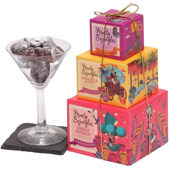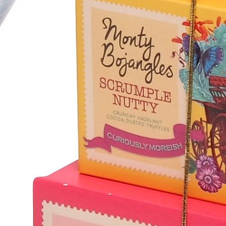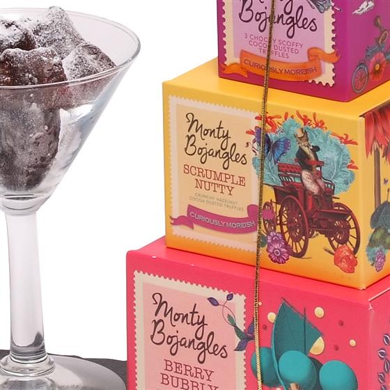 Monty Bojangles Berry Bubbly Raspberry Cocoa Dusted Truffles 150g,Monty Bojangles Choccy Scoffy Curious Truffles 27g,Monty Bojangles Scrumple Nutty Curious Truffles 100g,POSTAL CARTON