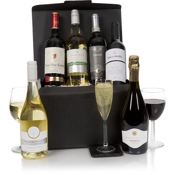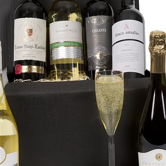 Cortefresca Prosecco 75cl,Finca Amalia Rioja Tinto 2016 75cl,75cl Vezzani Chianti DOGC,Lussac St Emilion 2016 75cl,75cl Hilmar Springs Chardonnay 2015,75cl Auction House Sauvignon Blanc 2014/15,PRESENTATION BOX