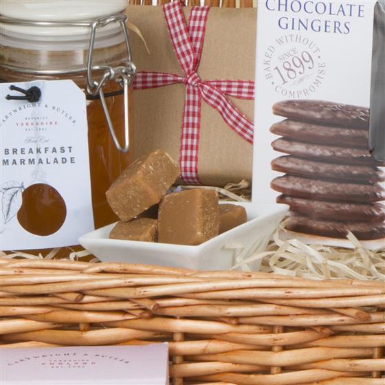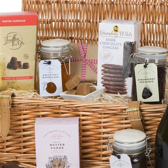 Cortefresca Prosecco 75cl,Grandma Wilds Chocolate Coated Gingers 150g,Cartwright & Butler Strawberry Preserve 300g,Cartwright & Butler Fine Cut English Breakfast Marmalade 280g,Cartwright & Butler Red Onion Marmalade 280g,Cartwright and Butler Butter Fudge 175g,Mathez Marc de Champagne Cocoa Dusted Truffles 200g,WICKER HAMPER