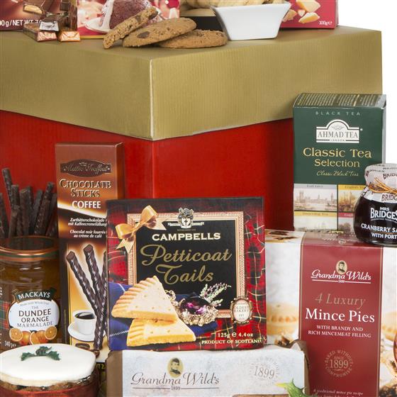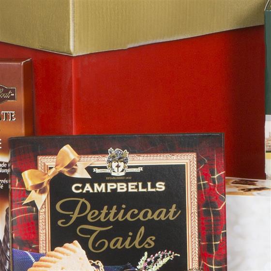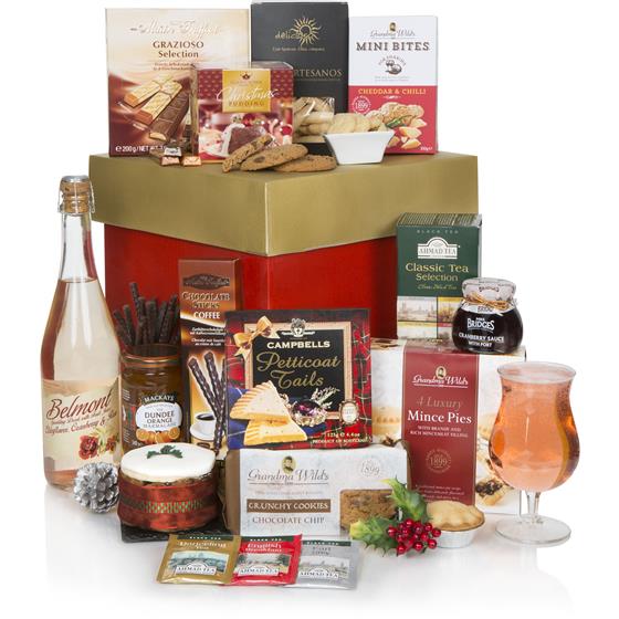 Belmont Elderflower, Cranberry & Rose Sparkling Drink 75cl,Campbells Petticoat Tails 125g,Grandma Wilds Cheddar and Chilli Mini Bites 100g,Picos Artesanos Breadsticks in Presentation Box 125g,Grandma Wilds Chocolate Chip Crunch Cookies 200g,Gold Crown Round Iced Christmas Cake 400g,Gold Crown Xmas Pudding 227g,Grandma Wilds 4 Lux Mince Pies with Brandy,Mackays Dundee Orange Marmalade 340g,Mrs Bridges Cranberry Sauce with Port 113g,Ahmad Classic Tea Selection 40g,Maitre Truffout Grazioso Chocolate Selection 200g,Maitre Truffout Dark Chocolate Coffee Sticks 75g,PRESENTATION BOX