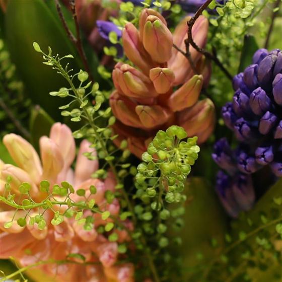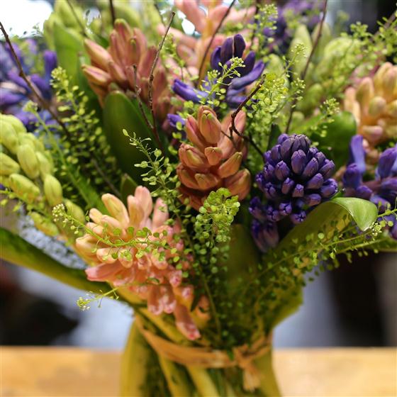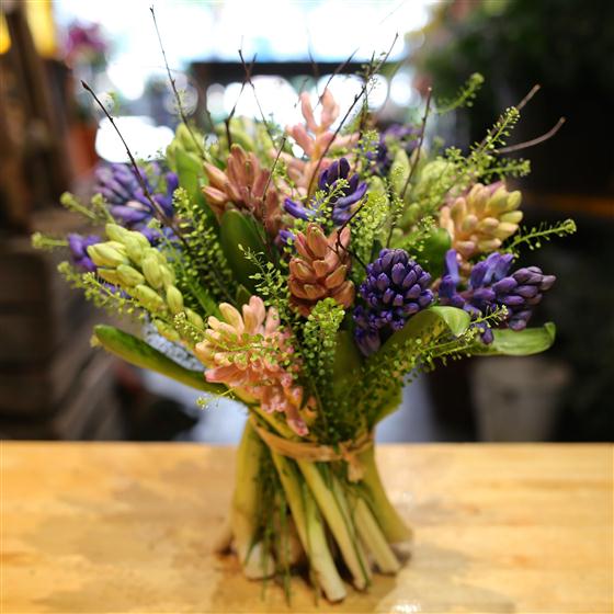 A highly scented spring hand tied posy of mixed hyacinths. A true delight.