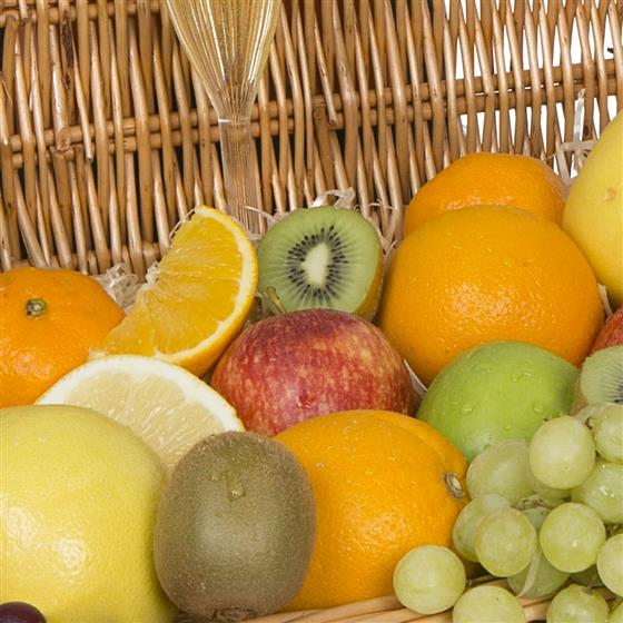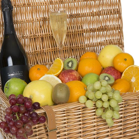 75cl Di Maria Prosecco DOC,Clementine/Satsuma,Large Orange,Kiwi Fruit,Royal Gala Apple,Black/White Grapes 500g,Granny Smith Apple,Large Grapefruit,WICKER HAMPER