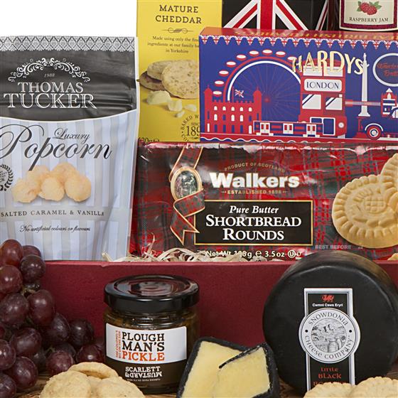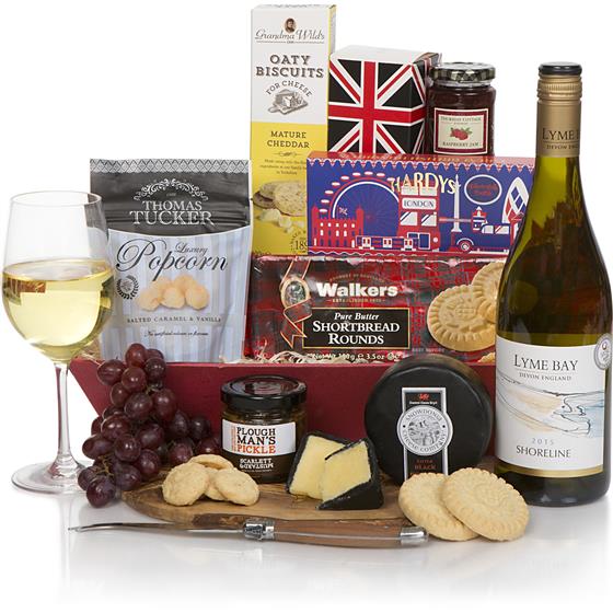 Lyme Bay Winery Shoreline Wine 75cl,Walkers Shortbread Thistle Rounds 100g,Tommy Tucker Salted Caramel & Vanilla Popcorn 25g,Grandma Wilds Mature Cheddar Oaty Biscuits 130g,Thursday Cottage Raspberry Jam 112g,Scarlett & Mustard Ploughmans Pickle 125g,Snowdonia Cheese Co Black Bomber 200g,New English Teas Best of British Teabags (10),Hardys Great British Humbugs 125g,KRAFT TRAY