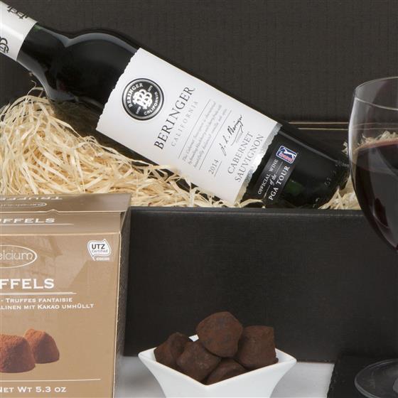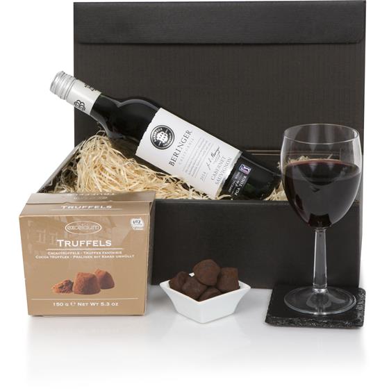 75cl Beringer Classic Cab Sauv 2015/6,Excelcium Cocoa Truffles 150g,Black Gift Box (360X190X90)