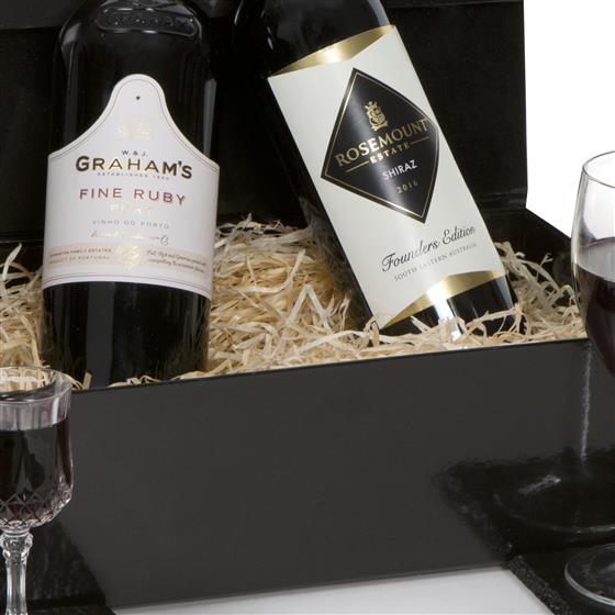 75cl Grahams Fine Ruby Port,75cl Rosemount Founders Selection Shiraz 2015/6,MAGNETIC GIFT BOX