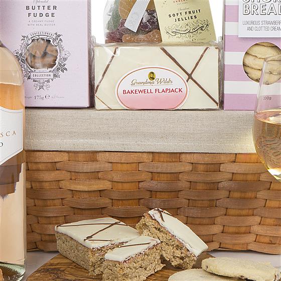 75cl Cortefresca Pinot Grigio Blush 2015,Grandma Wilds Bakewell Flapjack 120g,Simply Cornish Strawberry and Clotted Cream Shortbread 200g,Cartwright and Butler Soft Fruit Jellies in Kilner Jar 190g,Cartwright and Butler Butter Fudge 175g,LINED BAMBOO BASKET