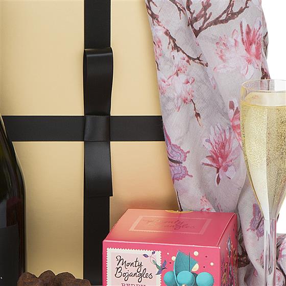 75cl Di Maria Prosecco DOC,Ladies Butterfly Print Scarf (180x100),Monty Bojangles Berry Bubbly Raspberry Cocoa Dusted Truffles 150g,Gift Box