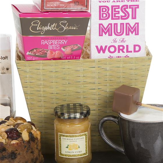 Original Cake Co Cherry & Almond Topped Fruit Cake 130g,Thursday Cottage Lemon Curd 110g,New English Teas English Breakfast Teabags (10),Elizabeth Shaw Raspberry Bites 107g,Choc o Lait Dark Chocolate Stirrer 33g,Hardys Best Mum Bar Chocolate 80g,POSTAL CARTON,PRESENTATION TRAY