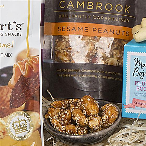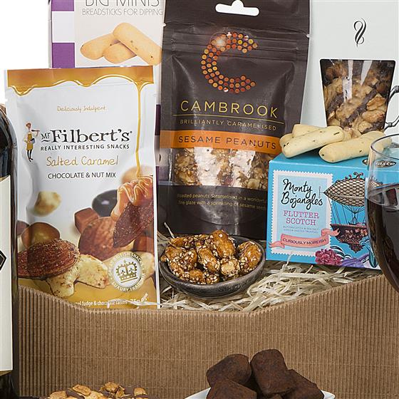 75cl Rosemount Founders Selection Shiraz 2015/6,NibNibs Rosemary Mini Breadsticks 100g,Cartwright & Butler Chocolate Peanut Cookies 150g,Cambrook Brilliantly Sesame Peanuts 80g,Filberts Deliciously Indulgent Salted Caramel Choc & Nut Mix 75g,Monty Bojangles Flutter Scotch Curious Truffles 100g,OPEN DISPLAY BOX