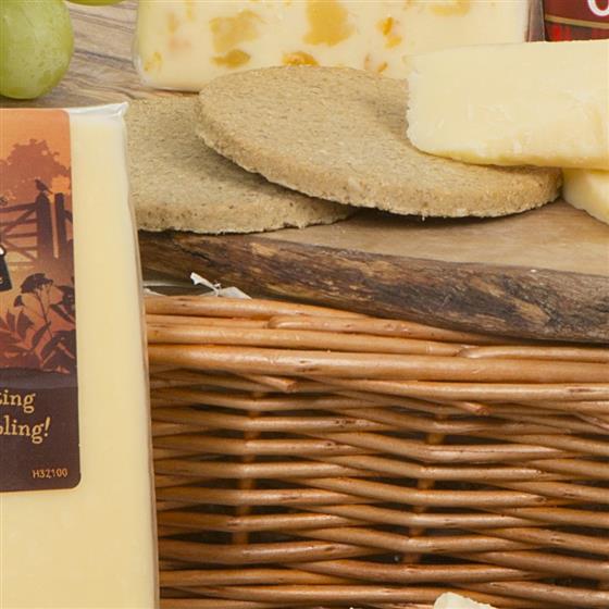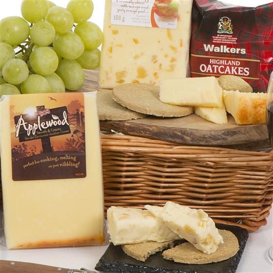 37.5cl Chateau Prieure Guillaume Bordeaux 2014,Walkers Highland Oatcakes 75g,Wensleydale with Mango & Orange 150g,Applewood Smoked Cheddar Wedge 150g,SMALL WILLOW BASKET
