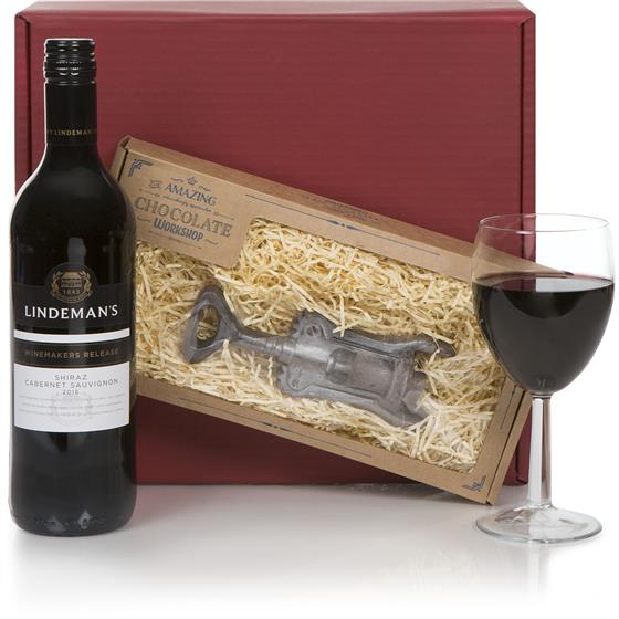 75cl Lindemans Winemakers Release Shiraz Cab Sauv 16,Amazing Chocolate Workshop Corkscrew,Gift Carton
